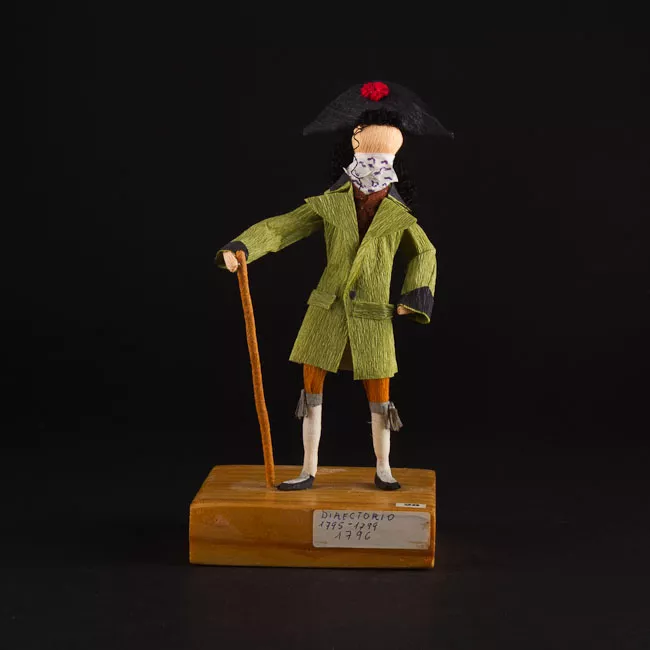 Objeto oblongo, con los extremos terminados en punta, centro cóncavo. La popa se diferencia de la proa porque la segunda posee terminación triangular en la punta. Posee los remos y distintos implementos realizados en tamaño pequeño como cuerdas, baldes, entre otros en su interior. Se encuentra sobre base rectangular.