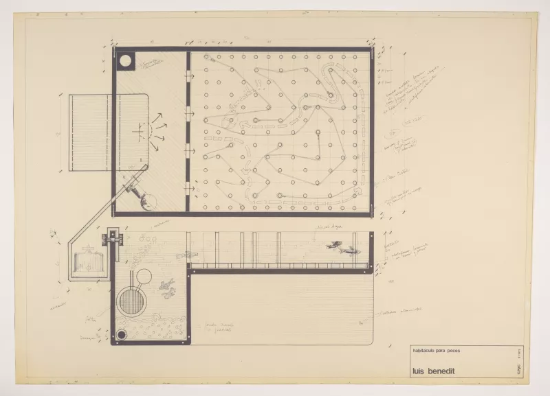Obra rectangular, orientación horizontal. Imagen blanco y negro. En la...