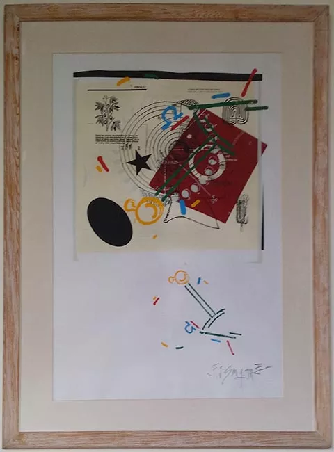 Obra bidimensional en color de formato rectangular, composición en bas...