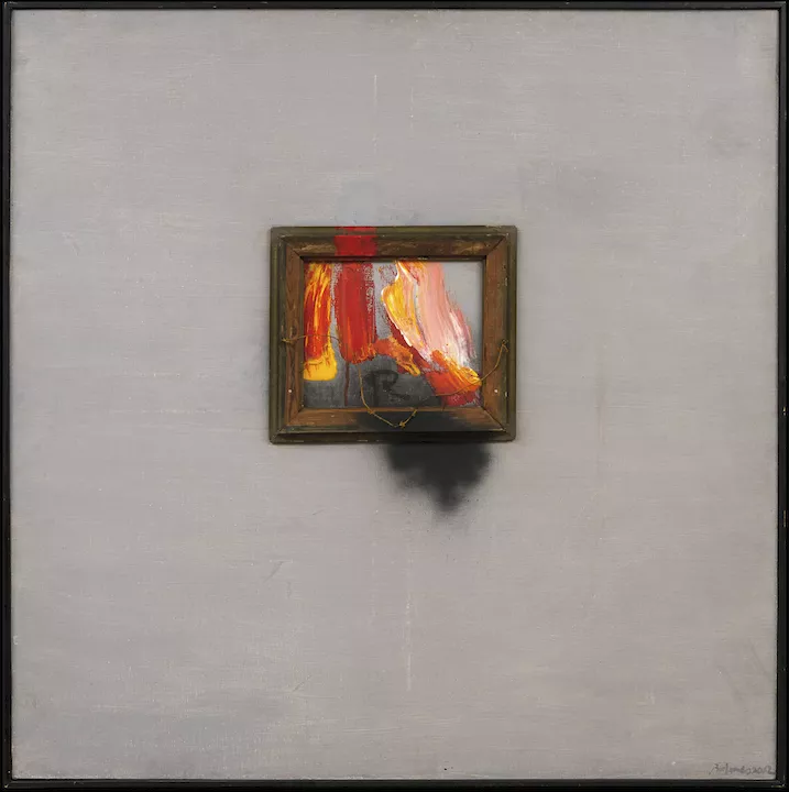 Obra de fotmato cuadrado. Composición en base a machas de colores. Sob...