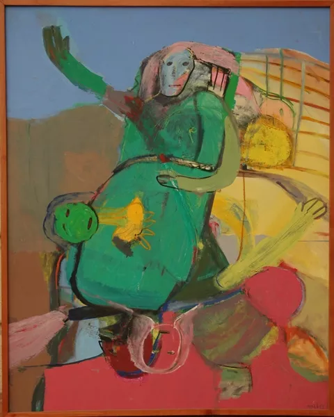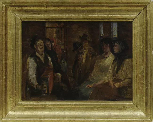Obra de formato rectangular. Composición en base a una escena interior...