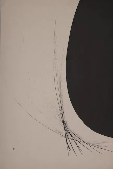 Obra en formato rectangular, vertical. Composición en base a la mitad ...