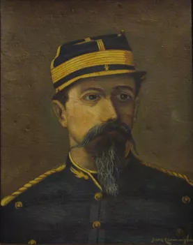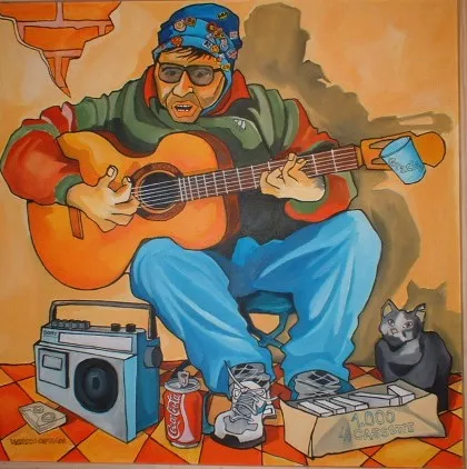 Obra de formato rectangular. Composición en base a un paisaje urbano, ...