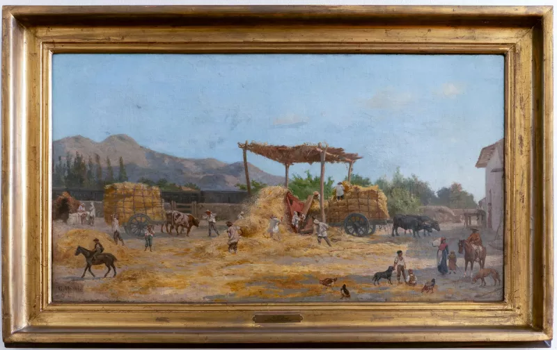 Obra de formato rectangular, disposición horizontal. Composición en ba...