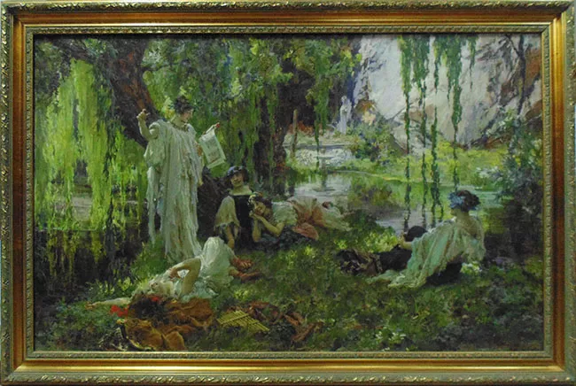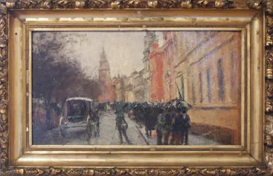 Marco dorado, tallado, con decoración de ángeles en las esquinas.