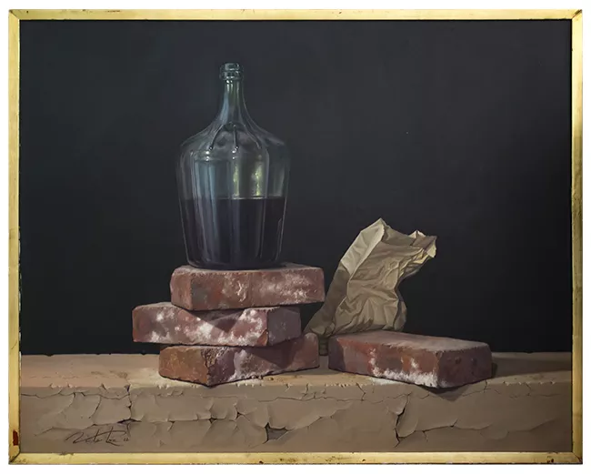 Obra de formato rectangular. Composición en base a una figura masculin...