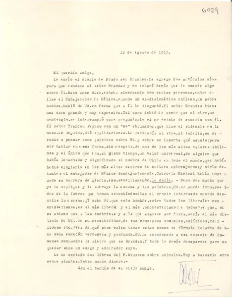 [Carta] 1954 febrero 20, Santiago, Chile [a] Gregorio Marañón, Madrid ...