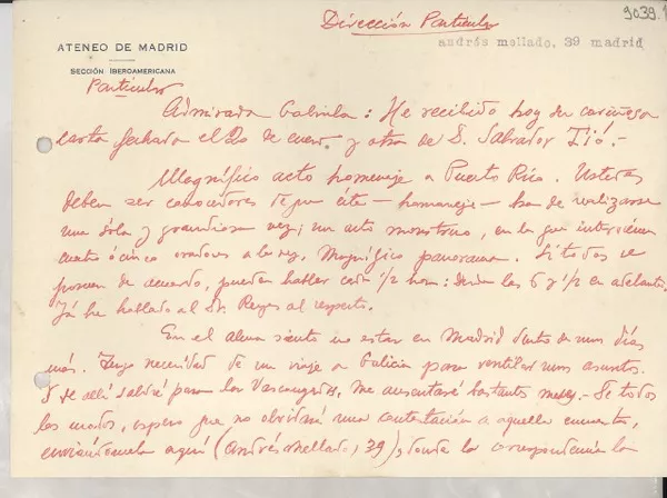 [Tarjeta] 1952 ene. 1, Lima, Perú [a] Gabriela Mistral [manuscrito] José Rafael Gallo.