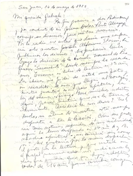 [Carta] 1952 mayo. 16, San Juan, [Argentina] [a] Gabriela Mistral [ma...