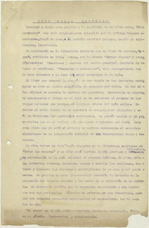 José María Arguedas [manuscrito] Matilde Ladrón de Guevara.