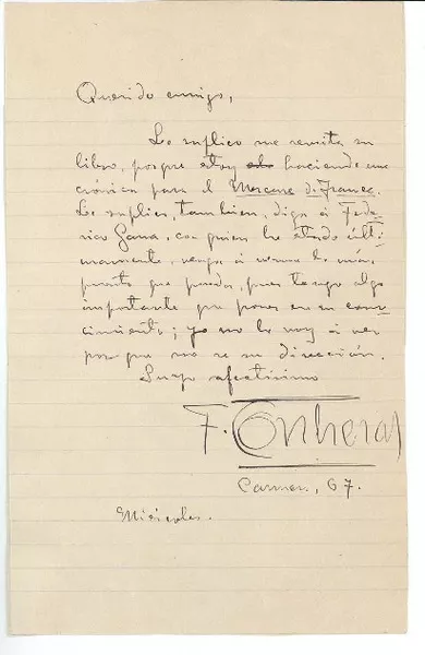 [Carta] c. 1919, Santiago, Chile [a] Manuel Magallanes Moure [manuscrito] Francisco Contreras V.