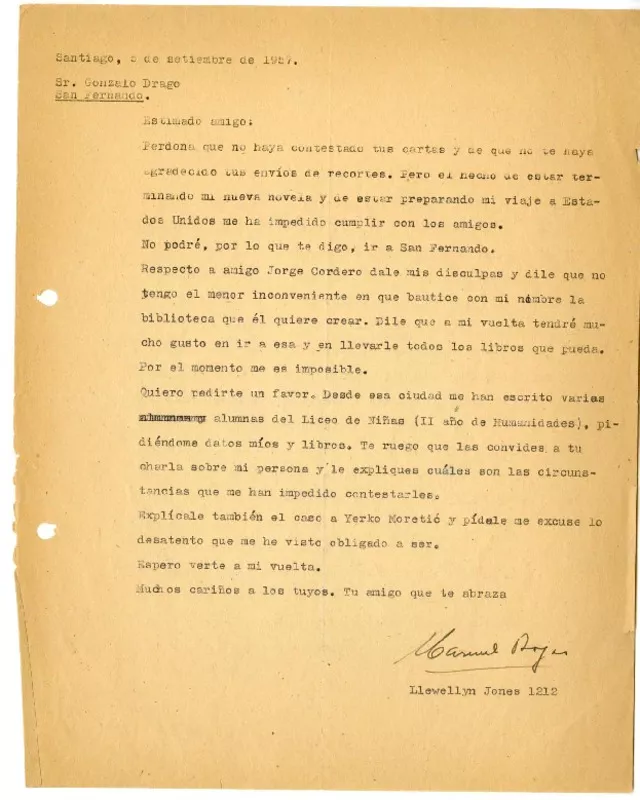 [Carta] 1957 septiembre 5, Santiago, Chile [a] Gonzalo Drago [manuscrito] Manuel Rojas.