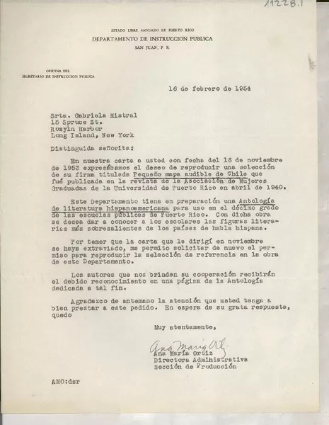 Memorandum, 1954 sept. 13, Santiago, [Chile] [a] Gabriela Mistral [ma...