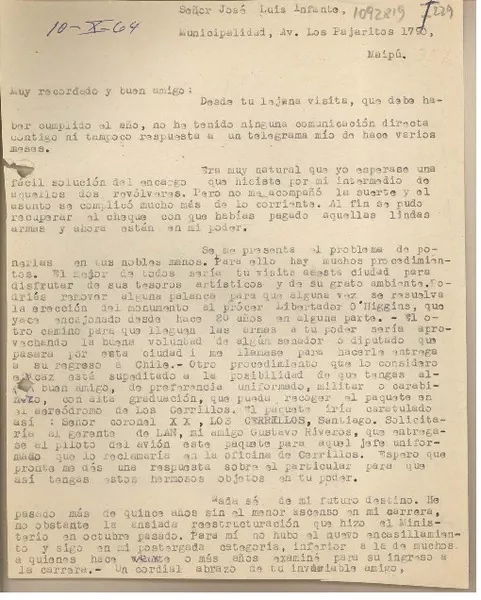 [Carta] 1954 abr. 22, Santiago, [Chile] [a] Gabriela [Mistral] [manuscrito] [José Santos González Vera].