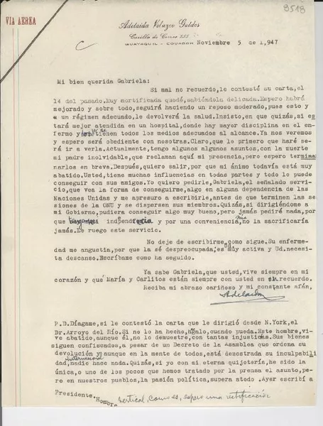[Carta] 1952 ago. 31, [Argentina] [a] Gabriela Mistral, Italia [manus...