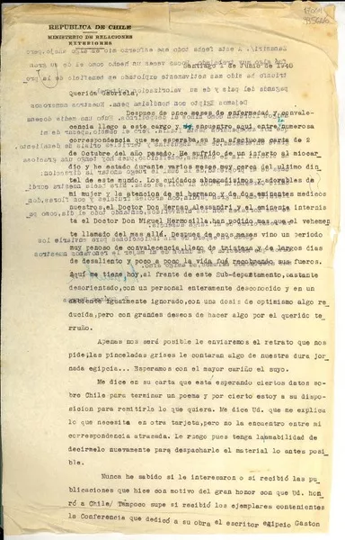 [Carta] 1952 ago. 30, La Habana, [Cuba] [a] [Gabriela Mistral] [manuscrito] Emilio Edwards Bello.
