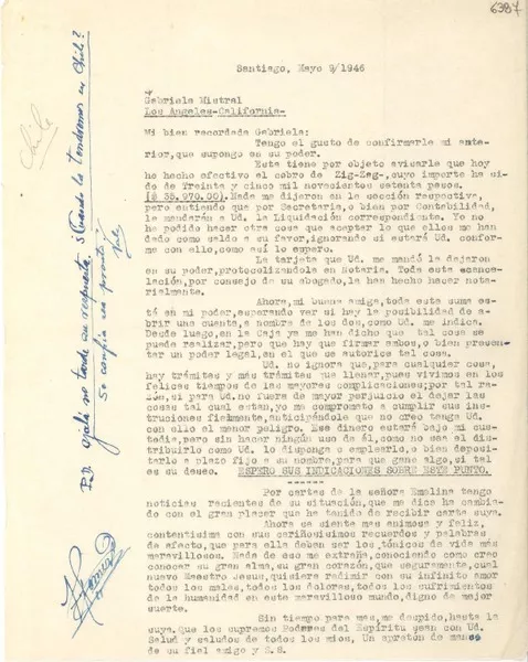 [Carta] 1944 jul. 18, Santiago [a] Gabriela Mistral [manuscrito] Zaca...