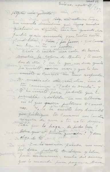 [Carta] 1947 ago. 29, México [a] Gabriela Mistral [manuscrito] Palma ...