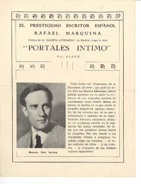 Portales íntimo por Alone [manuscrito] Rafael Marquina. [Santiago, Ch...