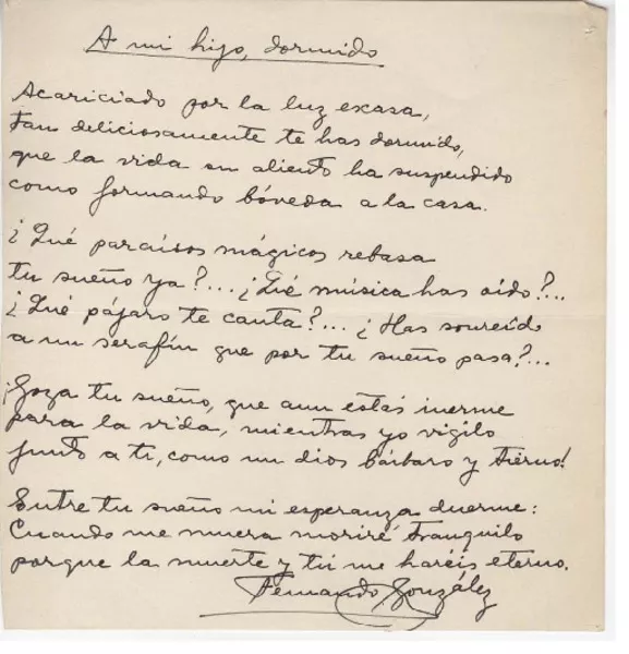 A mi hijo dormido [manuscrito] Fernando González.