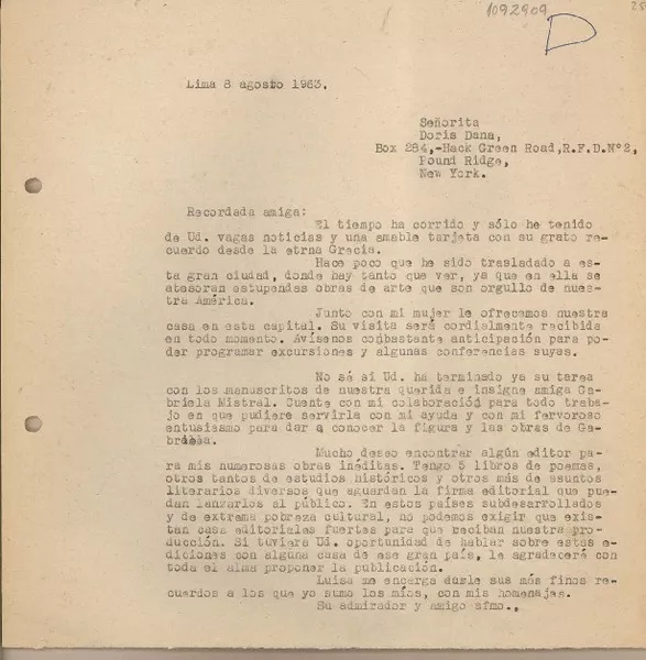 [Carta] 1953, [Santiago, Chile] [a] Joaquín Edwards Bello [manuscrito...