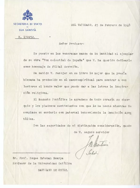 Santiago, Chile [a] Oscar Castro [manuscrito] Edmundo Concha.