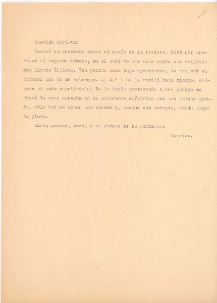[Carta] c.1947, Santiago, Chile [a] Rafael Alberto Arrieta [manuscrito] Eduardo Barrios [transcripción].