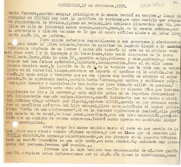 [Carta] 1980 sep. 26, Concepción, Chile [a] Miguel Arteche [manuscrit...