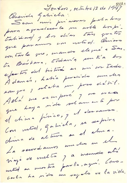 La piadosa [manuscrito] Gabriela Mistral. [2] p. ; 20 cm.