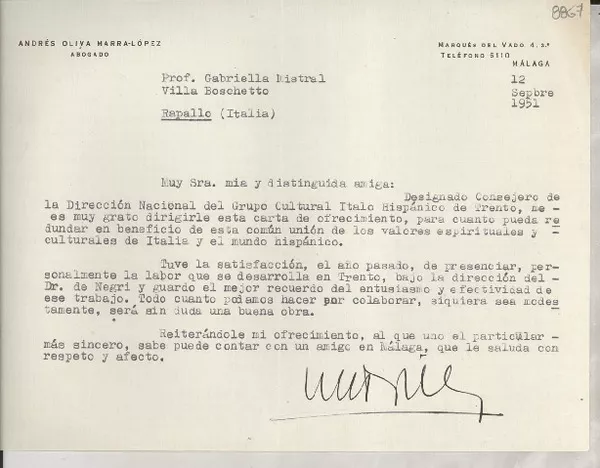[Carta] 1926 mar. 19, [Santiago], Chile [a] Sr. Marin [manuscrito] Is...