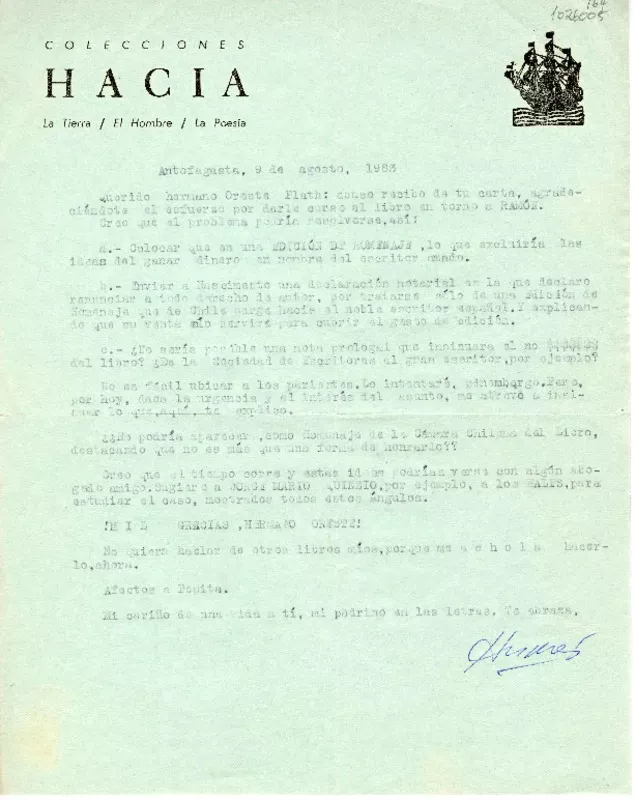 [Carta] 1959 noviembre, Santiago, Chile [a] Joaquín Edwards Bello [manuscrito] Luis Reyes Rojas.
