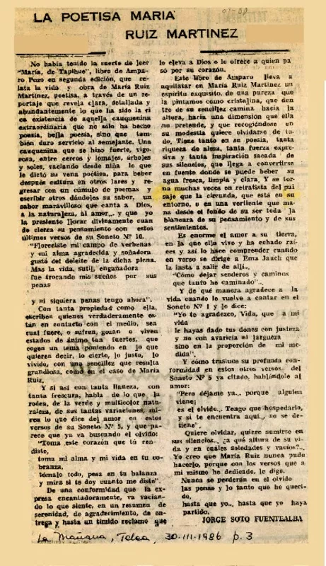 La poetisa María Ruiz Martínez [artículo] Jorge Soto Fuentealba.