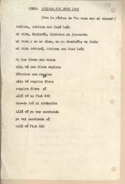 Adriana con José León [manuscrito] Rolando Cárdenas. 1 h. ; 21,3 x 14...