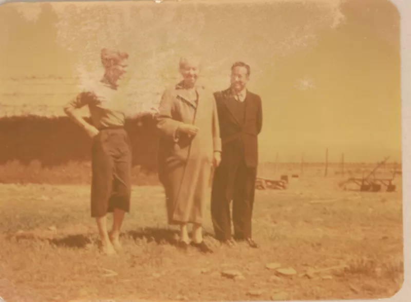 [Mujer posando de pie, con un vestido entallado, amarrado en la cintura] [fotografía] Kyutaro Tunekawa.