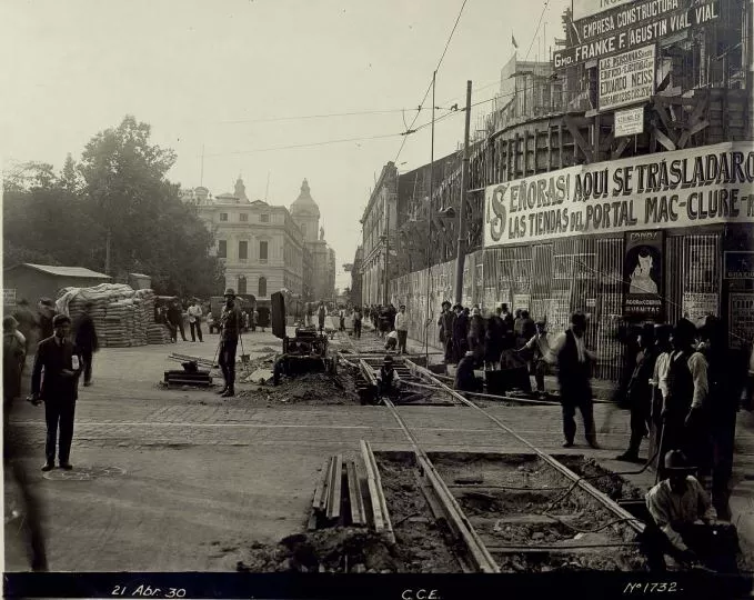 [Instalación de rieles en Santiago] : [fotografía] Chilectra.