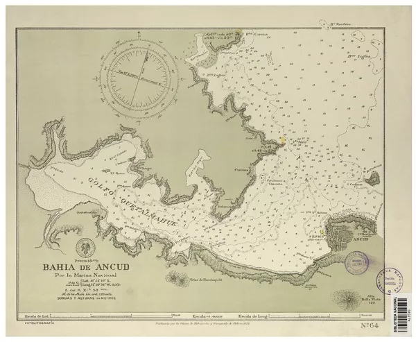 Estero Comau [material cartográfico] por el Servicio Hidrográfico y Oceanográfico de la Armada de Chile.