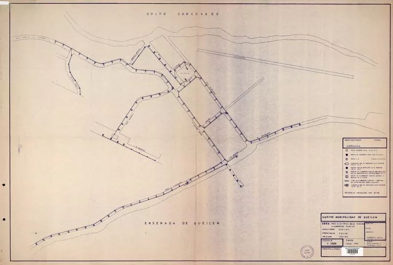 Localidad Queilén Provincia de Chiloé Región Décima : obra red elcétrica baja tensión alumbrado público [material cartográfico] : Ilustre Municipalidad de Queilén.