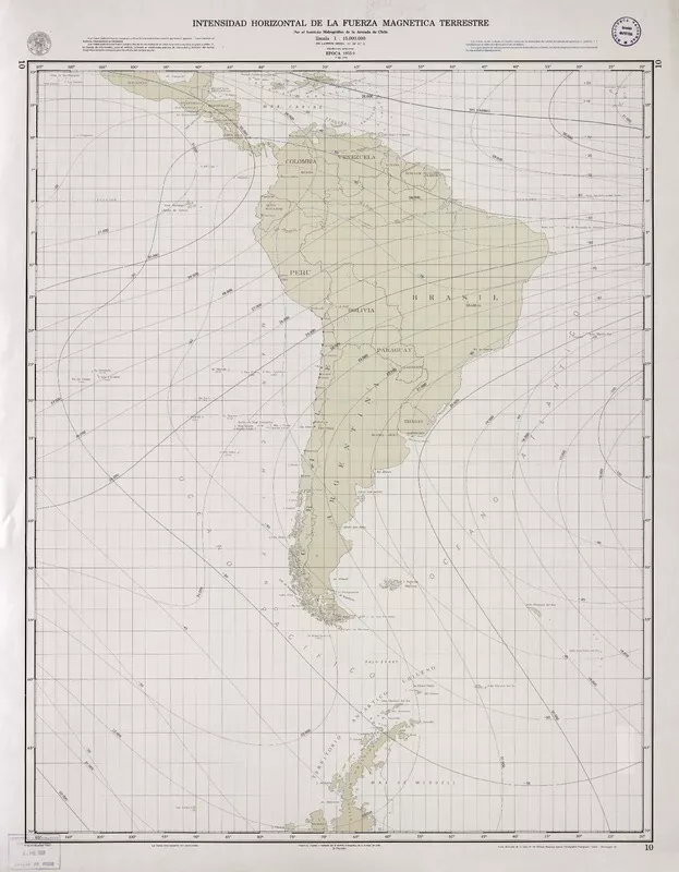 Intensidad horizontal de la fuerza magnética terrestre época 1975.0 [material cartográfico] : por el Instituto Hidrográfico de la Armada.