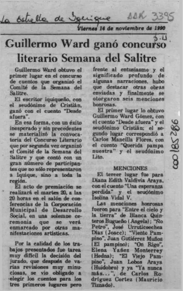 Guillermo Ward ganó concurso literario semana del salitre [artículo].