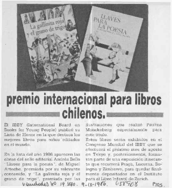 Premio internacional para libros chilenos. [artículo]. retr.
