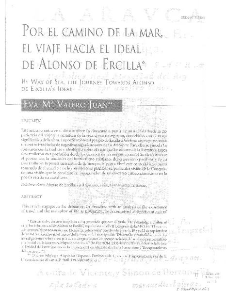 Por el camino de la mar, el viaje hacia el ideal de Alonso de Ercilla [artículo] Eva Ma. Valero Juan.