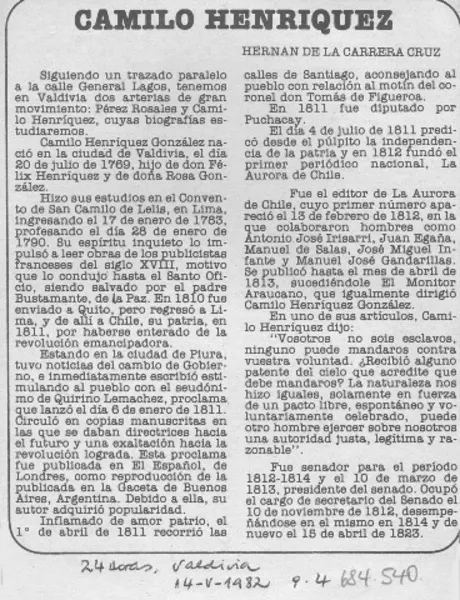 Camilo Henríquez [artículo] Hernán de la Carrera Cruz.