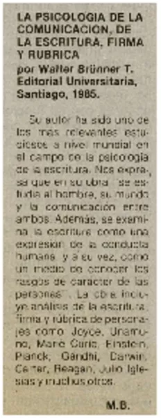 La Psicología de la comunicación, de la escritura, firma y rubrica [artículo] M.B.