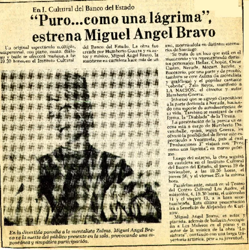 Puro... como una lágrima", estrena Miguel Angel Bravo. [artículo]. re...