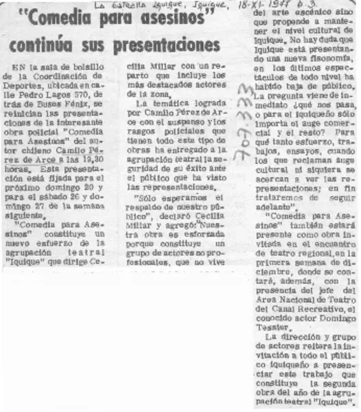 "Comedia para asesinos" continúa sus presentaciones. [artículo]