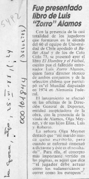 Fue presentado libro de Luis "Zorro" Alamos [artículo].