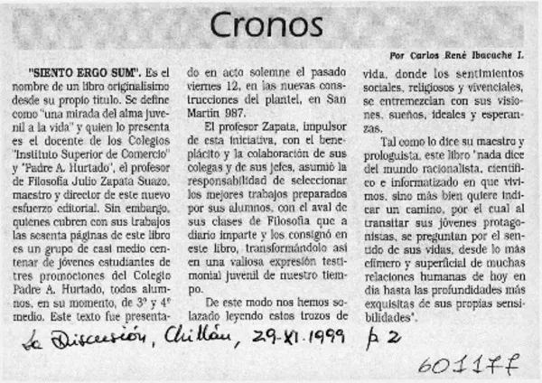 "Siento ergo sum" [artículo] Carlos René Ibacache I.