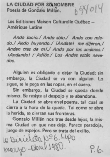Ser poeta es condenarse a una perpetua modestia". [artículo]. retr.
