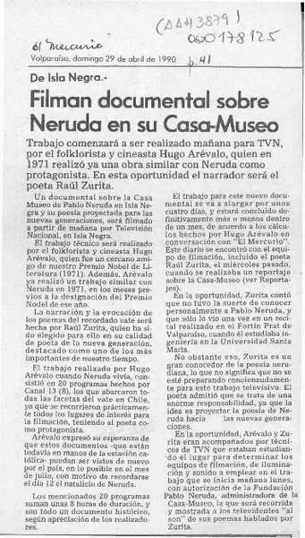 Filman documental sobre Neruda en su Casa-Museo [artículo].