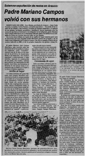 Padre Mariano Campos volvió con sus hermanos [artículo] Juan Costa Tr...